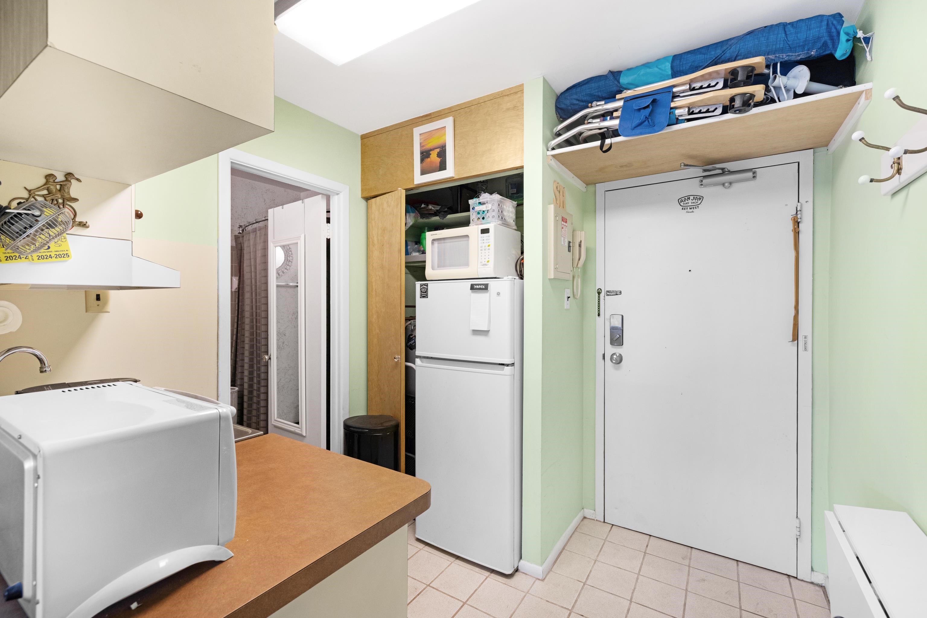 Welcome to the Lodge! Now you'll be ticket holders to front row seats and views of the Atlantic Ocean in the Anglesea section of North Wildwood. This unit is well suited for an easy lifestyle with one big open room and a private bathroom. There is ample space for sleeping and relaxing in the living room along with a space for dining just outside of the kitchenette. There is laminate flooring in the main living area and ceramic tile in the kitchen and bath. The wall mounted air conditioner is just four years old. The unit is completely heated for anyone wishing to live or visit year round. The front door is slotted for air circulation. From this location you are conveniently close to the pool. The Lodge offers many amenities. There is a large inground pool, a kiddie pool, tennis courts, grills, a playground, a clubhouse, laundry room and plenty of on-site parking. 4 pool passes and 4 parking passes are allowed each unit. There are water views from your very own balcony. There is also an on-site management company to keep things running smoothly and guarantee the enjoyment of all owners. With low condo fees and direct frontage on the Atlantic Ocean, this is a great spot for year-round and seasonal usage.