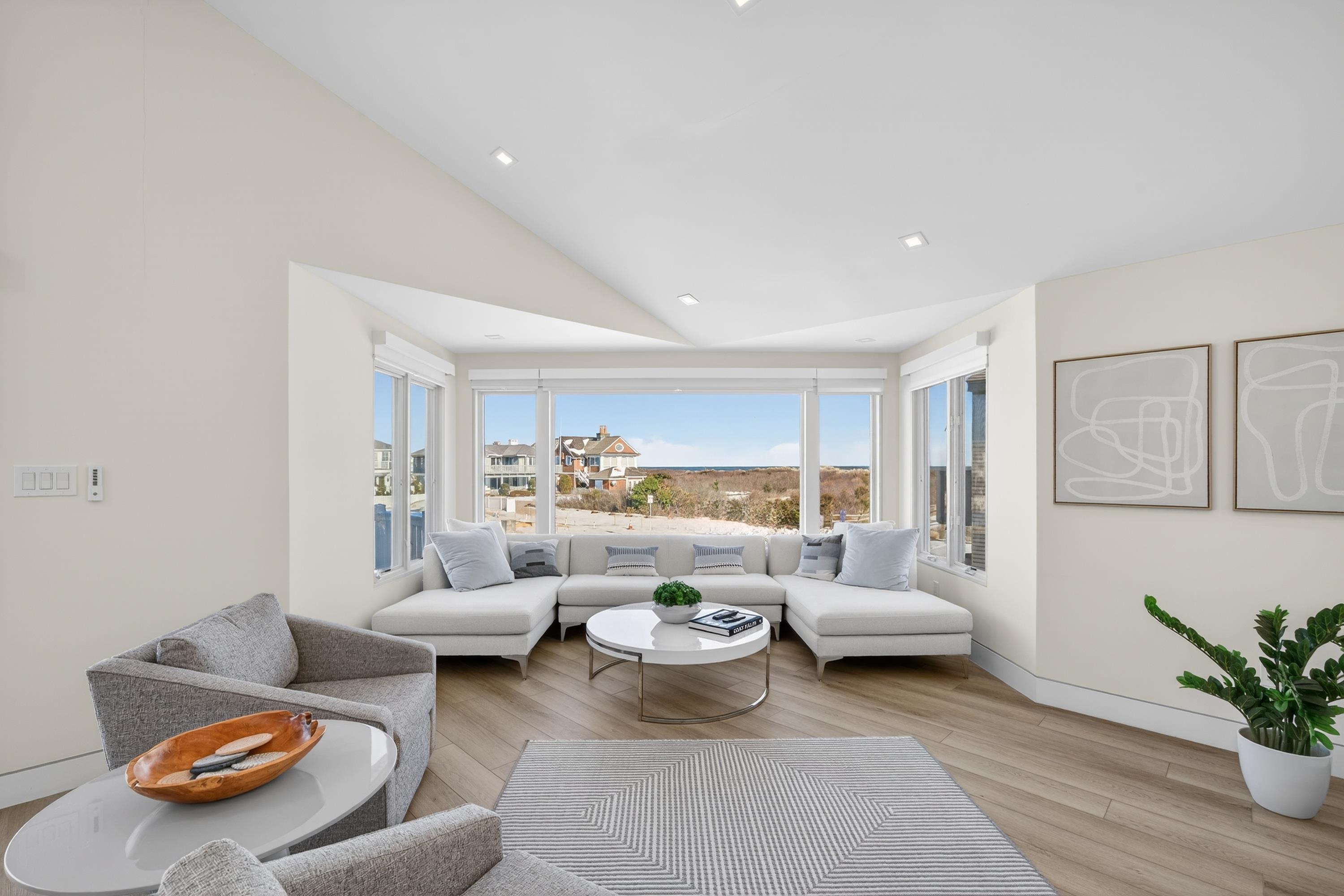 Complementing the oceanfront home is a beautifully redesigned and thoughtfully updated rear residence, offering exceptional privacy, flexibility, and surprisingly expansive ocean views. Positioned as a second back-lot home, this residence enjoys open sight lines toward the Atlantic, enhanced by underground utilities that preserve clean, unobstructed vistas. From the upper level and expansive deck, residents can take in sweeping coastal views and refreshing sea breezes a rare advantage for a non-oceanfront property. The home features four bedrooms and two full baths, with a well-designed layout ideal for both full-time living and guest accommodations. The first floor includes a spacious family room and two bedrooms, creating a comfortable and functional living space. Upstairs, the open-concept kitchen, dining area, and living room flow seamlessly to a large deck overlooking the ocean perfect for entertaining, dining al fresco, or enjoying sunset and sunrise views. Completely redesigned and professionally decorated just three years ago, the residence reflects a sophisticated coastal aesthetic and is offered in turnkey condition. Whether used for extended family, guest quarters, or rental income, this exceptional secondary home adds tremendous value and versatility to this rare Stone Harbor offering.