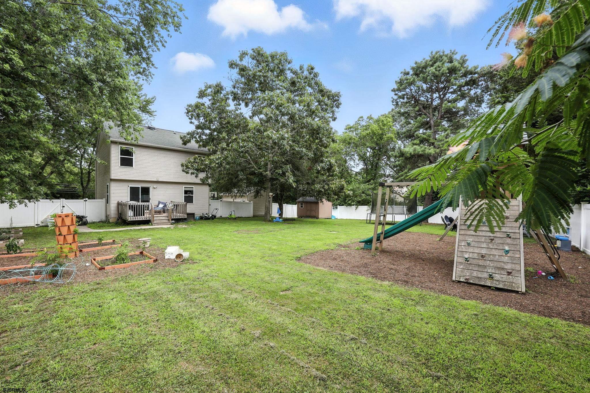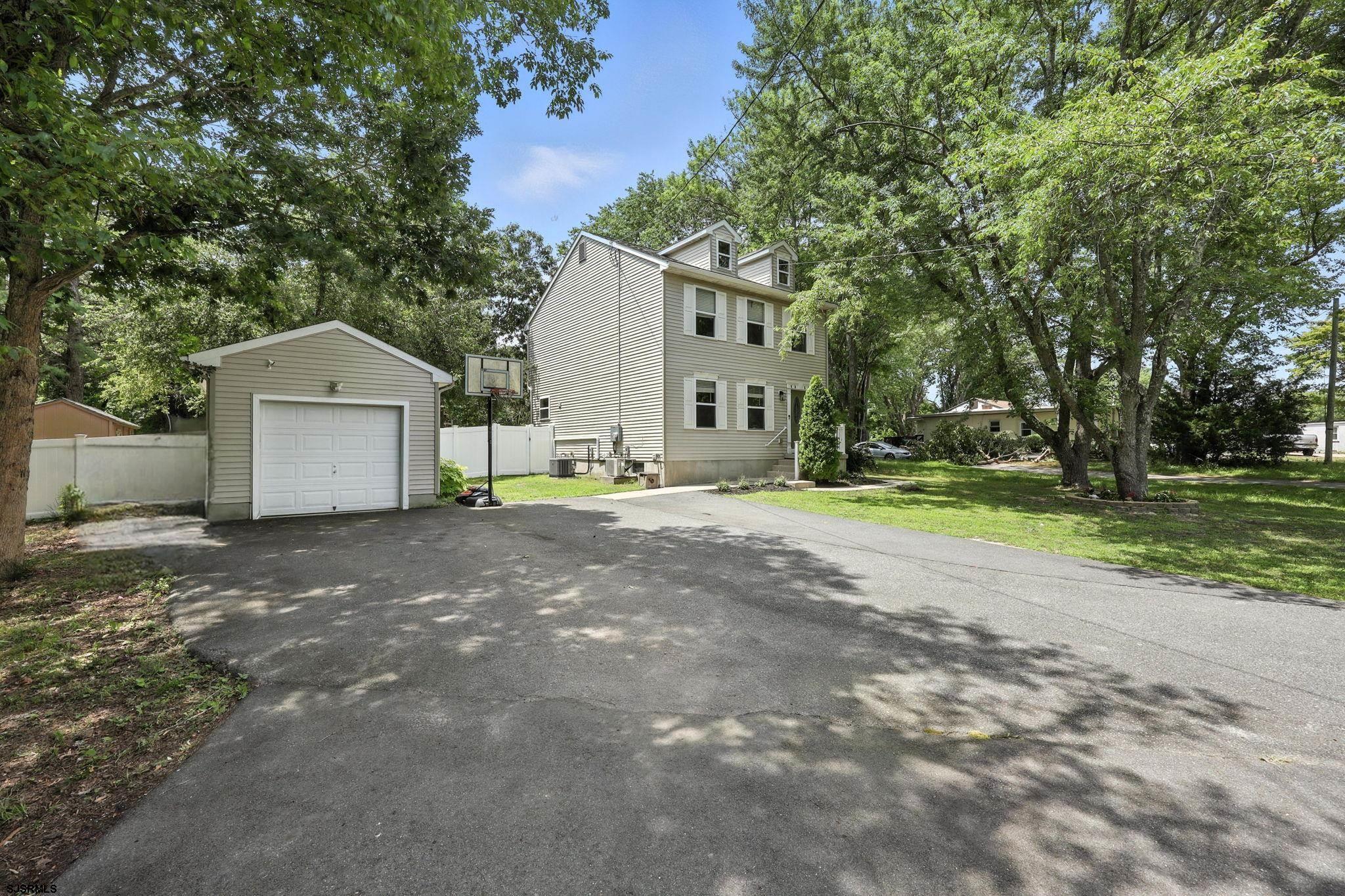 Setback on an oversized, tree-lined lot, this 3-bedroom, 3.5-bath Colonial-style home offers comfort, space, and privacy in a prime Egg Harbor Township location. Built in 2012 and well maintained, it features a thoughtful layout and recent updates throughout. Step inside to luxury vinyl tile flooring on the main level and in the newly finished basement perfect for both everyday living and entertaining. The kitchen is appointed with cherry wood cabinets, stainless steel appliances, granite countertops, and opens to a dining area and freshly painted living room. Upstairs, all three bedrooms are comfortably carpeted. The spacious primary suite includes an en suite bathroom, while a full hallway bath serves the other two bedrooms. A third full bathroom is located in the finished basement, offering flexibility for a guest space, home office, or recreation area. The home sits well back from the road, offering a deep front yard and excellent curb appeal. Out back, the fully fenced yard backs to mature trees, providing a peaceful, private retreat with room to play, garden, or unwind. Located just minutes from shopping, dining, and major routes, this move-in-ready home combines traditional style with modern convenience inside and out. Don t miss your chance to tour this standout property!