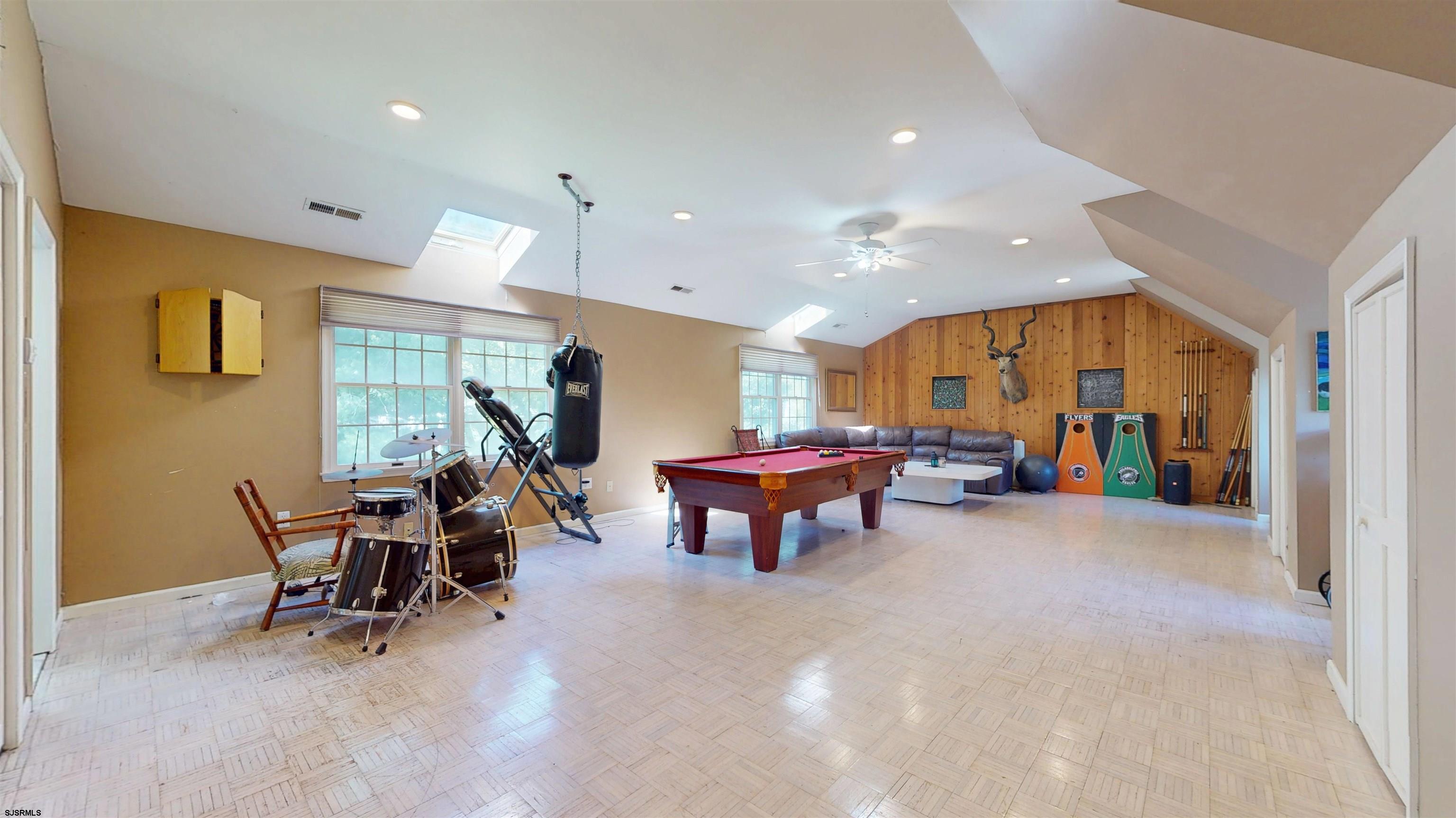 Welcome to 7 Woodstock Drive, Linwood a classic L-shaped Dutch Colonial tucked away on a quiet cul-de-sac, just steps from the world-famous bike path and directly across from Mainland Regional High School and Bel Haven Middle School. This spacious 4000 square foot, five-bedroom home sits on an oversized lot and blends timeless charm with thoughtful modern upgrades, including improvements through the South Jersey Gas program high-efficiency HVAC, a Naviance tankless hot water system, upgraded insulation, and a vapor barrier. Exterior Features Gray solid cedar siding with black shutters, Covered brick front porch and paver walkway Two-car garage with epoxy-sealed floors, built-in shelving, overhead storage, and an extra refrigerator, Large driveway with its own basketball court Interior Highlights Brazilian Cherry and Teak hardwood floors in the living and dining rooms. Tile entryway and open, flexible floor plan ideal for everyday living and entertaining. Gourmet kitchen with granite countertops, tile backsplash, stainless steel appliances, center island with overhead lighting, and microwave above the stove, Sunken family room with cozy, energy-efficient forced air fireplace and adjoining den, Spacious living and dining rooms, plus a first-floor bedroom, with bath, and laundry room perfect for guests or multi-generational living Upstairs Four additional bedrooms including a primary suite with walk-in closet and private bath. Recently updated bathrooms throughout. Oversized bonus game room above the garage with vaulted ceilings, wood park floors, ceiling fan, large closet, and full bath ideal as a media room, gym, or private guest suite Outdoor Living Wraparound screened-in porch with double-pane windows. Large deck overlooking a mature garden. Horseshoe pit, storage shed, and fully fenced yard for privacy and play. This property is designed for those who love to relax, hang out, entertain, stay active, and enjoy the outdoors. With its unbeatable location near schools, parks, and the bike path, plus its generous layout and upgrades, 7 Woodstock Drive offers the perfect blend of community connection and private retreat. The sellers, longtime Linwood residents, are downsizing as three of their five children have moved into homes of their own giving the next folks the opportunity to create memories in this truly special property while remaining in Linwood. And ask about the mra bond that is included! Showing available on Thursdays Fridays and Saturdays after 10am.
