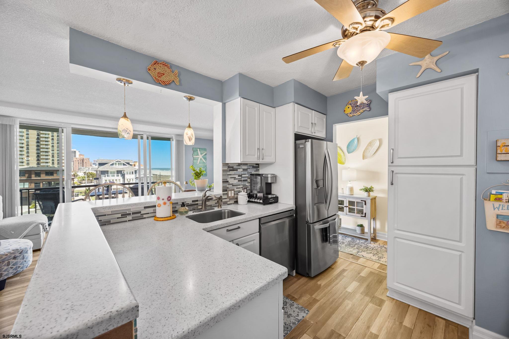 Pristine is an understatement! Located in the highly sought-after beachfront Vassar Square Condominiums, you will find that unit 304 leaves little to be desired. This beautifully updated one-bedroom, one-bath unit offers sweeping ocean views and a spacious private balcony overlooking Atlantic City and the coastline and on-site valet parking. Inside, you ll find stylish LVT flooring, a crisp white kitchen with new stainless steel appliances and lots of storage and counter space, bar-top seating, and a dining area. The bright, spacious living room has lots of space for entertaining and leads to the large balcony through brand-NEW double sliding glass doors, creating a seamless indoor-outdoor living experience. The primary bedroom features a custom-designed closet system which will literally knock your socks off! There are additional custom closets in the entryway for extra storage. The updated full bath is modern and inviting, and two NEW PTAC units ensure year-round comfort. This unit also includes an indoor parking space, a 4x6 private storage space in the building and convenient common laundry on the same floor. Vassar Square offers resort-style amenities, including a newly redone pool with modern hardscaping, an upgraded fitness center, a club room, library, indoor valet parking, bike storage, a beautifully renovated lobby that welcomes you home in style along with a 5 star on-site restaurant The Queen Bean Bistro. The monthly HOA fee includes all amenities and utilities (except cable) for added convenience. The building is nearing completion of a major exterior renovation including new balconies, brick repointing, and key structural upgrades to meet today s condominium standards. Best of all, this unit s portion of the assessment has been paid in full. Located directly on the iconic Ventnor boardwalk, close to North Beach restaurants including Aroma and the newest Martina's Cafe, and just a few minutes from Margate and Atlantic City. This is your opportunity to enjoy beachfront living at its finest in one of the Jersey Shore s most desirable communities.