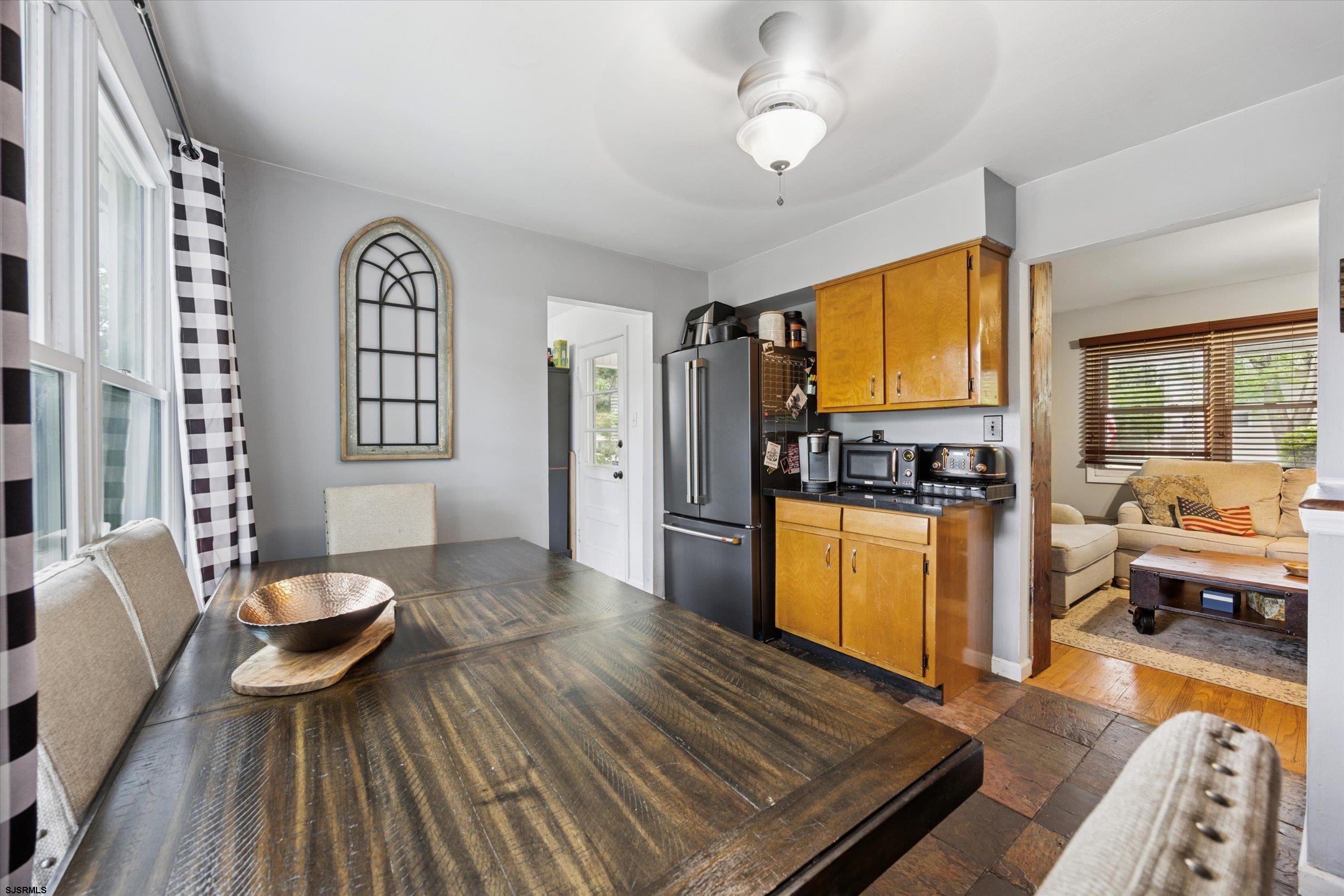 Welcome to your new home at 18 Colwick Drive in Somers Point, NJ! This charming single-family ranch-style residence, built in 1965, offers a cozy retreat with 2 bedrooms and 1 bathroom spread across 812 square feet of living space. Step inside to discover original hardwood floors, a spacious family room, and a large primary bedroom that provides comfort and style. The eat-in kitchen is thoughtfully updated with a new high-end refrigerator. A standout feature of this home is the unique finished basement, complete with bilco doors that lead to a private, fenced backyard. This outdoor space is perfect for entertaining, featuring an attached deck, a fire pit, an outdoor shower, and a storage shed with a potbelly stove and attached covered deck. Enjoy the convenience of covered on-site parking with the attached carport, along with ample street parking options. Additional amenities include awnings, a barbecue area, and a washer dryer in a nicely updated laundry room. The home also features solar panels that provide a low monthly electric bill! This property is a rare find in a great location, offering both charm and modern convenience.
