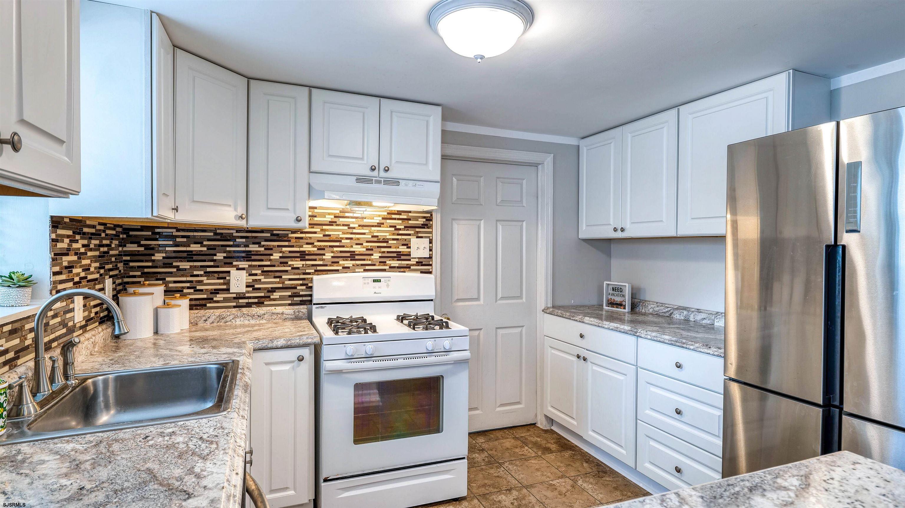 A Ventnor City renovated duplex for sale with bay views on Sacramento Avenue. Four blocks to the beach and boardwalk. This duplex offers a total of 5 bedrooms plus a walk up loft and 2 full baths, garage for storage, deck, front and back outside living space, gated outdoor dining and BBQ area, and an enclosed outside shower. Top floor offers a large spacious newer deck with water views and three bedrooms plus the walk up loft, one full bathroom, living room, dining area and laundry room, a fantastic open concept. Newer mini splits for air and heat. The first floor offers a cute front porch, renovated 2 bedroom one bath apartment with a laundry room and storage for bikes and beach chairs. Includes partial furniture and all large appliances. Baseboard heat and window units for air. Roof is only 2 years young and a newer tank less hot water heater less than 2 years old. New front deck and back stairs and newer garage door. Walk to Newport Marina, Dunkin for coffee, Sapore and Agnes restaurants, shops and more.