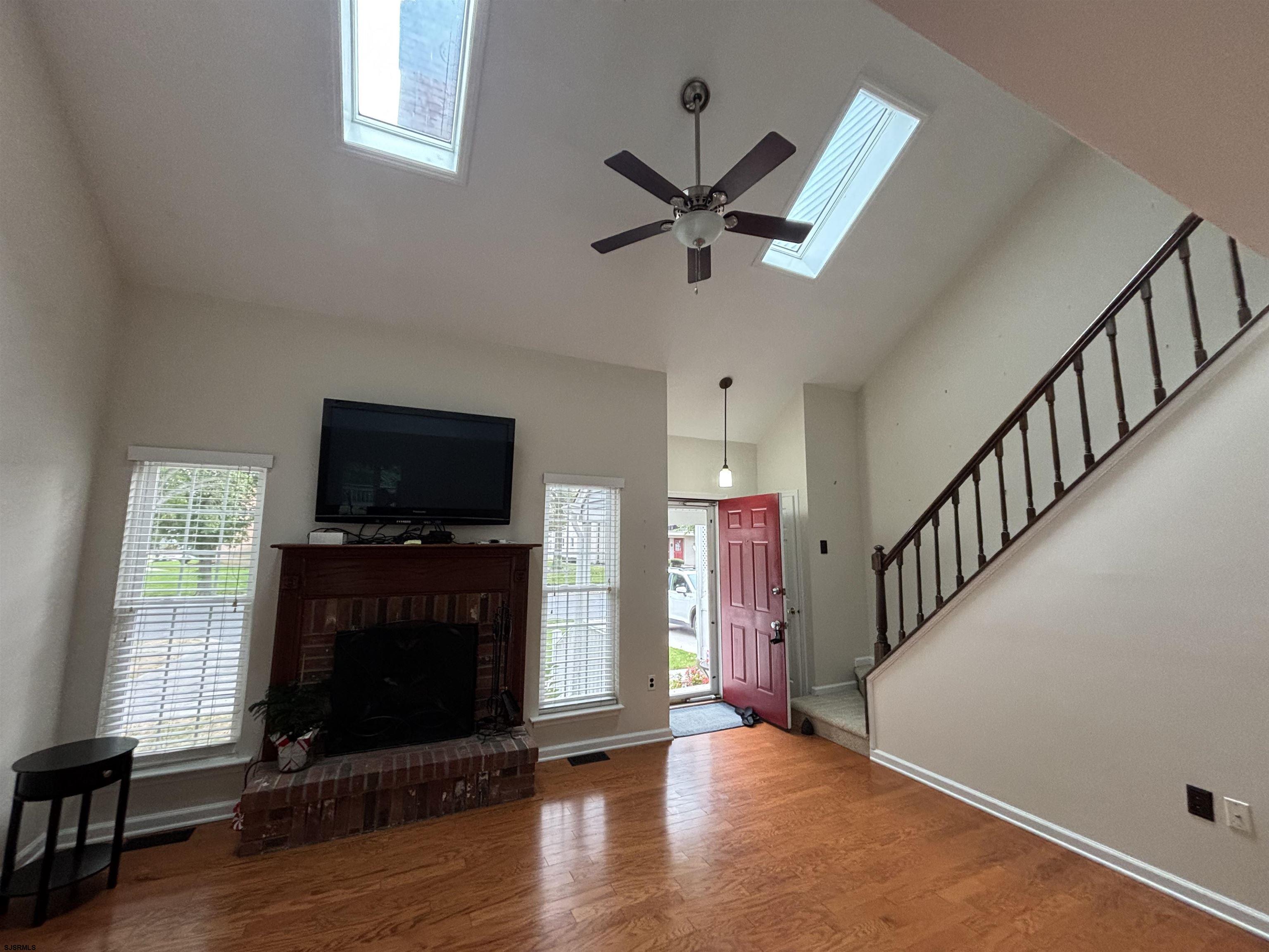 Rare Gem in Somers Point- This Lovingly maintained End Unit Townhome is available now- You will be wowed upon entry with soaring cathedral ceilings offering an expansive living room great room area with 2 sun-drenching skylights and a gas fireplace for cozy nights in the coming months - the nicely appointed eat in galley style kitchen offers shaker cabinets and stainless appliances and plenty of space to cook and dine overlooking peaceful views from the deck out the rear sliders to the backyard -great for BBQS, sunset watching and relaxation -the secondary bedroom and a half bath round out the 1st floor -The second floor primary suite does not disappoint- large enough for king bed and also offering a huge walk in closet and a lovely bathroom with soaking tub and shower as well as a separate vanity dressing area-This lovely home is perfectly situated close to all that Somers Pt has to offer with shopping and dining -Huge plus is you are only 5 minutes from the Beaches of Ocean City or Longport Margate -also just off Exit 30 GSP -NOT A CONDO-NO FEES