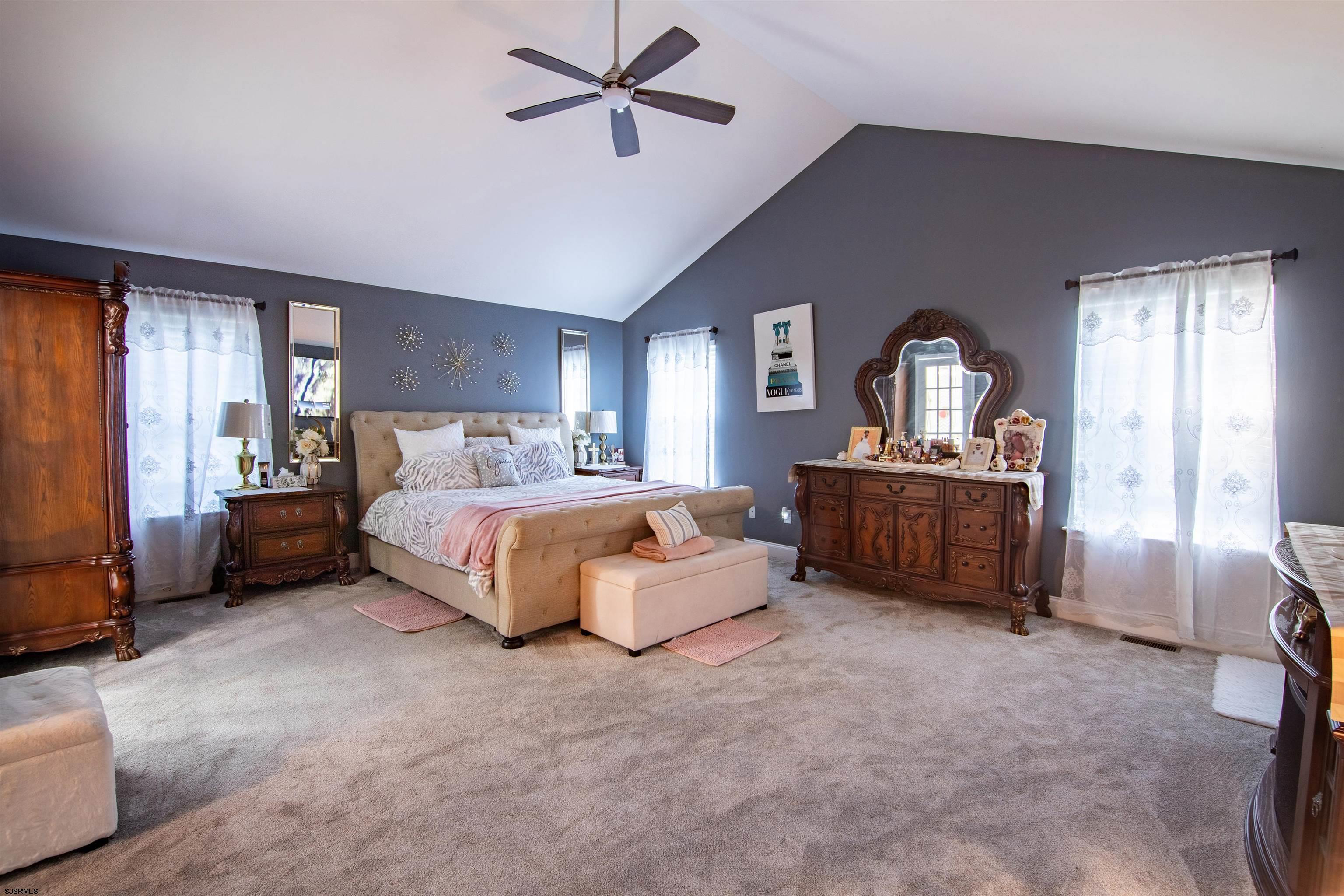An Unrivaled Oasis in Equestrian Estates located just steps from all that Bargaintown Park has to offer. Your arrival at this curated corner residence is met with a charming covered porch, setting the stage for the elegance within. Step into a dramatic two-story foyer where soaring vaulted ceilings and a statement chandelier create a breathtaking first impression. A sweeping staircase winds gracefully to an open second-floor balcony, enhancing the incredible sense of volume and light. This grandeur flows into the sun-drenched main level, a masterpiece designed for sophisticated entertaining. Beautiful brand new hardwood floors have just been installed on the first floor. A gourmet chef's kitchen serves as the heart of the home, flowing seamlessly into a large family room anchored by a cozy gas fireplace, while an elegant formal dining room stands ready for the upcoming holiday season. From here, extend your gatherings onto a sprawling brand new composite deck overlooking a shimmering 40x20 heated saltwater pool that was just installed in September A tranquil poolside gazebo sits on the far side of the pool, providing peace and shade on a hot summers day. All of this on a huge corner lot surrounded by an 7 foot brand new white vinyl privacy fence. The owner's sanctuary awaits upstairs. Here you'll find brand new lush carpet just installed. An expansive primary has a completely renovated brand new luxury bathroom with Jacuzzi tub, speakers and mood setting LED lighting to help you unwind after a long day. This primary bath has been customized to pamper the new owners. Back in the primary suite, you'll find a large walk in closet customized by California Closets. A finished basement offers limitless flexibility, perhaps a theatre, office or a home gym are in your future With new vinyl floors, there is very little left for you to make this your home. An exceptional property for the discerning buyer. Your private tour awaits but not for long.