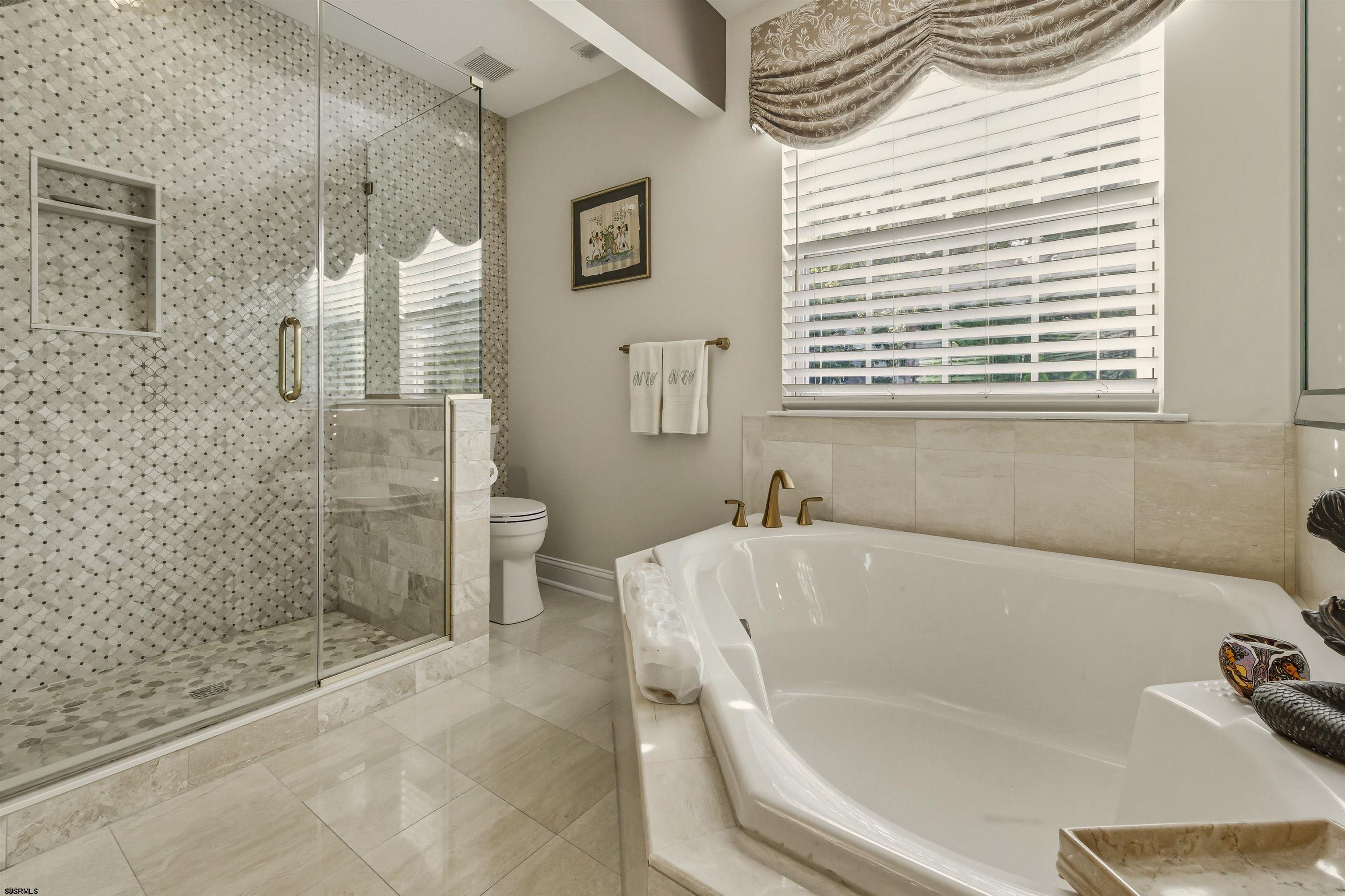 Welcome to your magnificent sanctuary in the highly desirable Equestrian Estates of Egg Harbor Township. This immaculate residence offers a spacious 2,820 square feet and boasts a host of premium features, including recently renovated baths and newer HVAC and water heater. The home's excellent flow is established by two separate staircases providing easy access between the main and upper levels. Upstairs, you will find four generously sized bedrooms and two full bathrooms. The true showstopper is the luxurious Primary Suite, a private retreat complete with a cozy gas fireplace, an elegant vanity prep area, a large walk-in closet, and a stunning spa-like bath featuring a soaking tub, separate shower, and double sinks. The main level is ideal for entertaining, offering an eat-in kitchen, a private office, and a family room with a bar. Additional features include a two-car garage and a full basement for storage or future expansion. Step outside to a gorgeous, private garden oasis a beautifully landscaped exterior that provides a tranquil setting perfect for entertaining or quiet evenings. Located moments from shopping and offering easy access to the stunning South Jersey beaches, this home is the quintessential blend of luxury, privacy, and convenience.