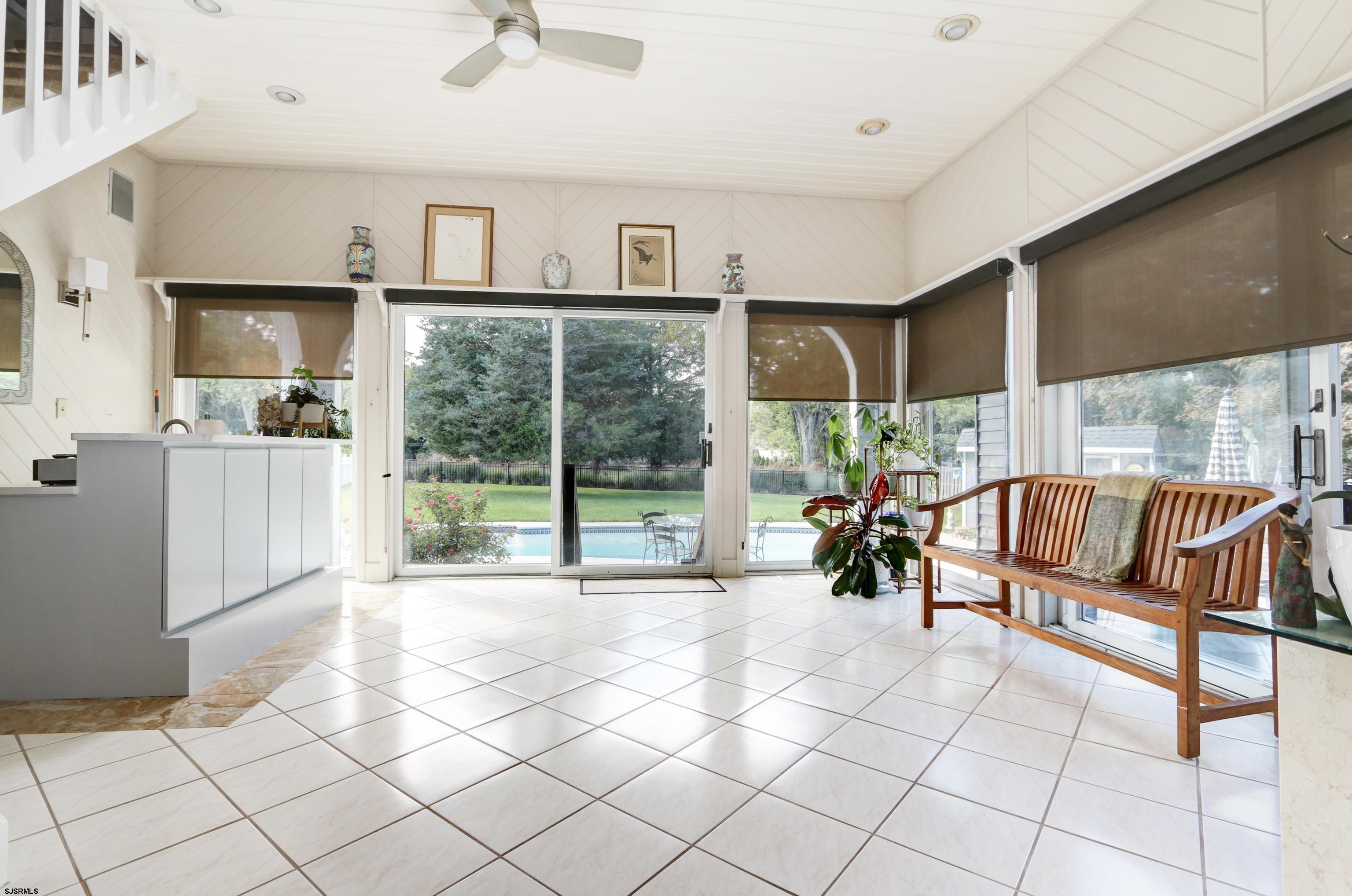 Custom Contemporary tucked away on a quiet cul-de-sac. This 4 bedroom and 3 bath home offers the perfect blend of style, comfort, and functionality. Thoughtfully updated residence welcomes you with soaring cathedral ceilings, abundant natural light throughout and space for everyone. The multi-level design provides both privacy and open-concept living. The stunning chef s kitchen boasts quartz countertops, stainless steel appliances, and generous cabinet and counter space seamlessly opening to the dining area and inviting living room highlighted by a stone gas fireplace. The first floor also includes a formal living room, full bathroom, and a bright Florida room with wet bar, ideal for relaxing or entertaining. A few steps down lead to a versatile recreation flex room and a convenient laundry area. Upstairs, you ll find a spacious loft, three additional bedrooms, and a full bath. The private master suite, accessed via its own staircase from the Florida room, features a master bath and an oversized walk-in closet & gas fireplace. Step outside to your backyard oasis complete with a fenced yard, in-ground pool, and patio area perfect for gatherings. Additional highlights include a 2-car attached garage, three storage sheds, and solar panels to help reduce utility costs. A truly unique home offering space, comfort, and exceptional design!