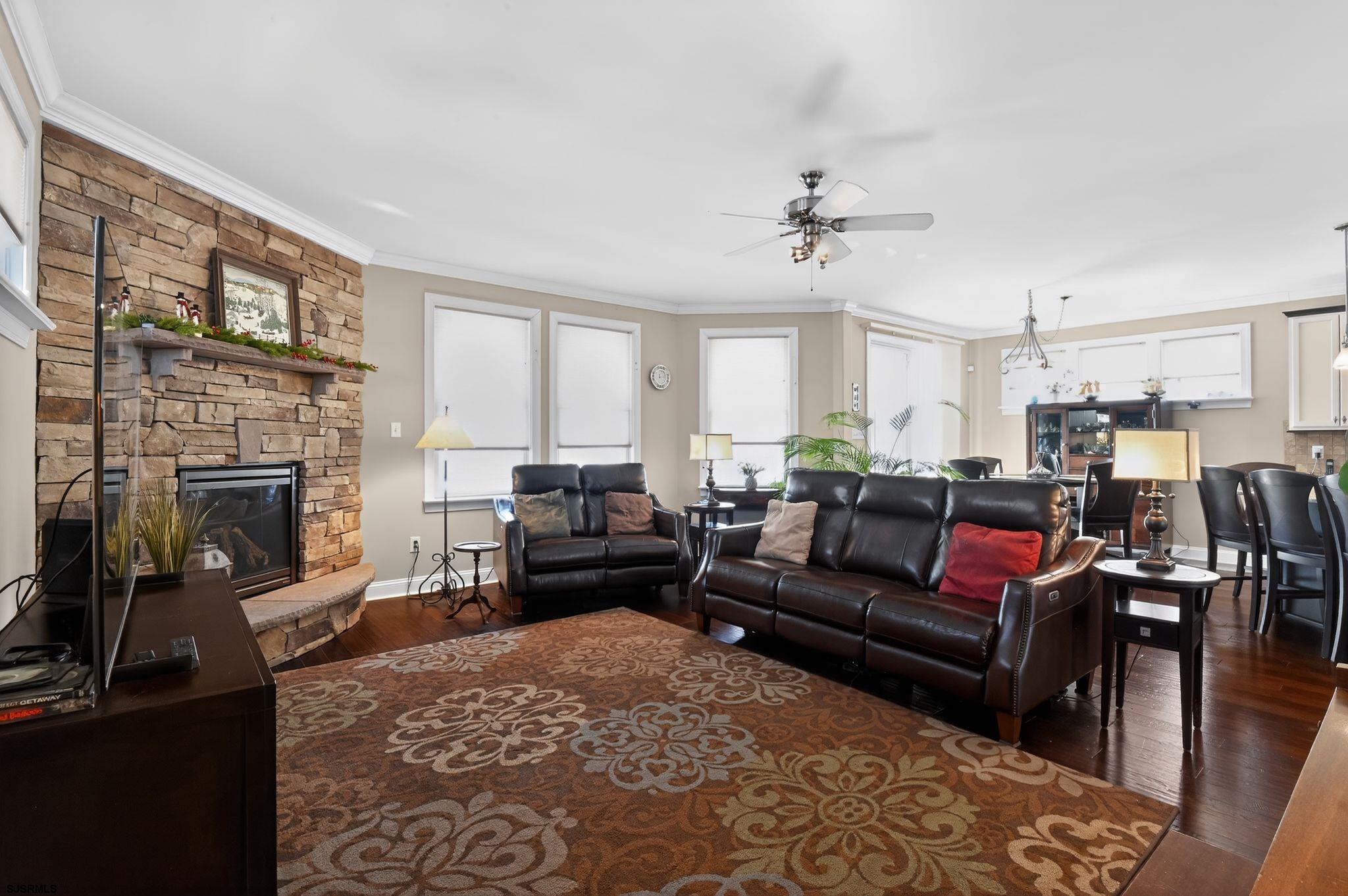 Welcome to this spectacular single-family home nestled in the family friendly Merion Park neighborhood of Ocean City just off Roosevelt Boulevard. This beautifully designed three-story residence offers an ideal blend of coastal charm and everyday comfort. Featuring three private master bedroom suites, three full bathrooms, and an additional half bath, the layout offers privacy and flexibility for family and guests alike. A dedicated home office provides the perfect space for remote work or quiet study. The heart of the home is the custom kitchen, complete with a center island which flows seamlessly into the dining area and living room highlighted by a cozy fireplace. Enjoy your morning coffee or evening glass of wine on any of the decks on all three levels, extending your living space outdoors and creating multiple spots to unwind, soak in the shore air and watch the sunrise or sunset. Outdoor speaker system on back deck is perfect for entertaining. Additional highlights include a driveway with parking space for 4 plus cars, a two-car garage with an attached storage room, and a fully fenced yard ideal for kids, pets, and outdoor gatherings. 3609 Pembroke Lane offers comfortable yet luxurious year-round living by the beach and bay. Don't miss this wonderful opportunity to own a beautifully appointed home in one of Ocean City s most sought after neighborhoods!