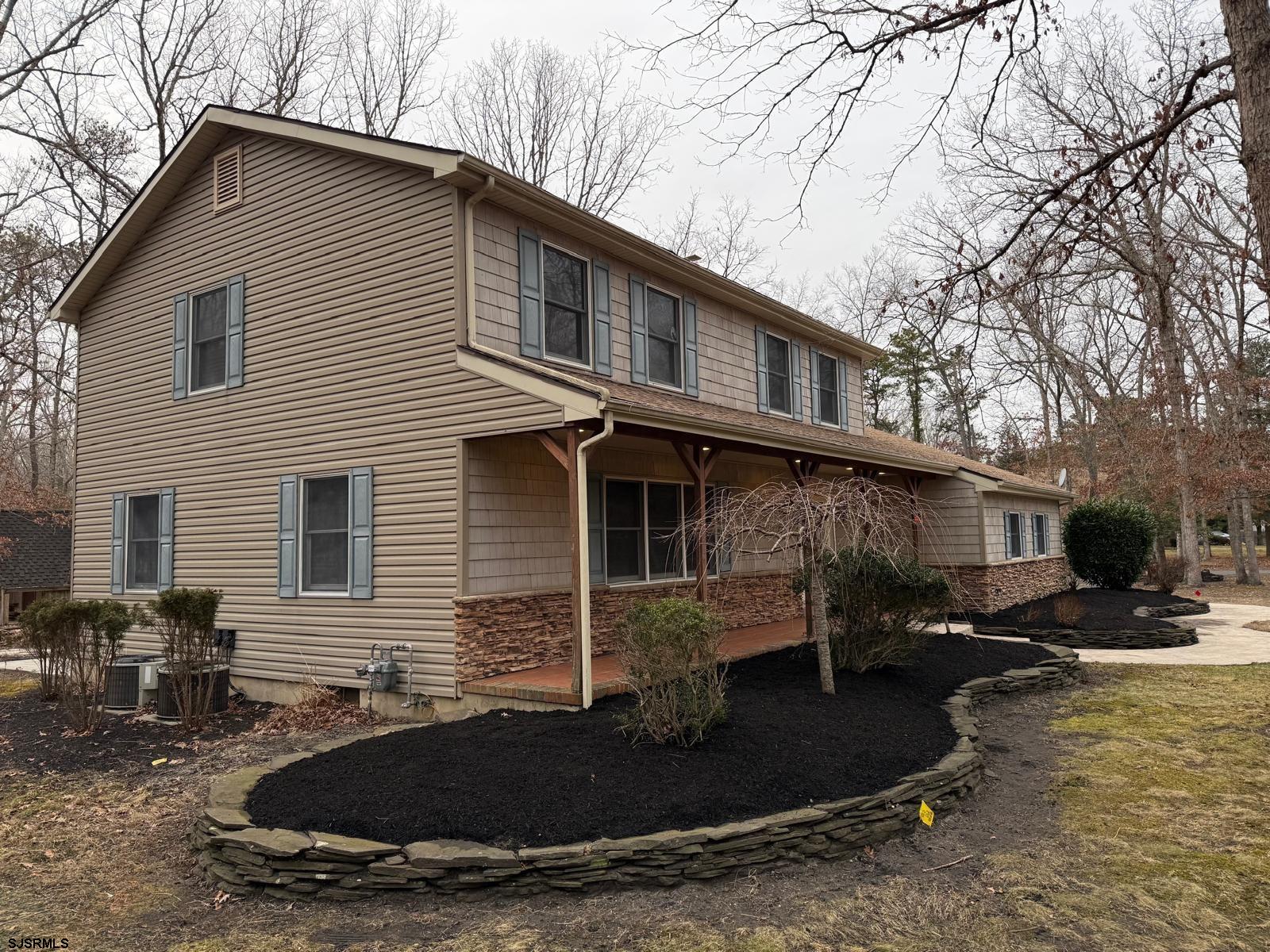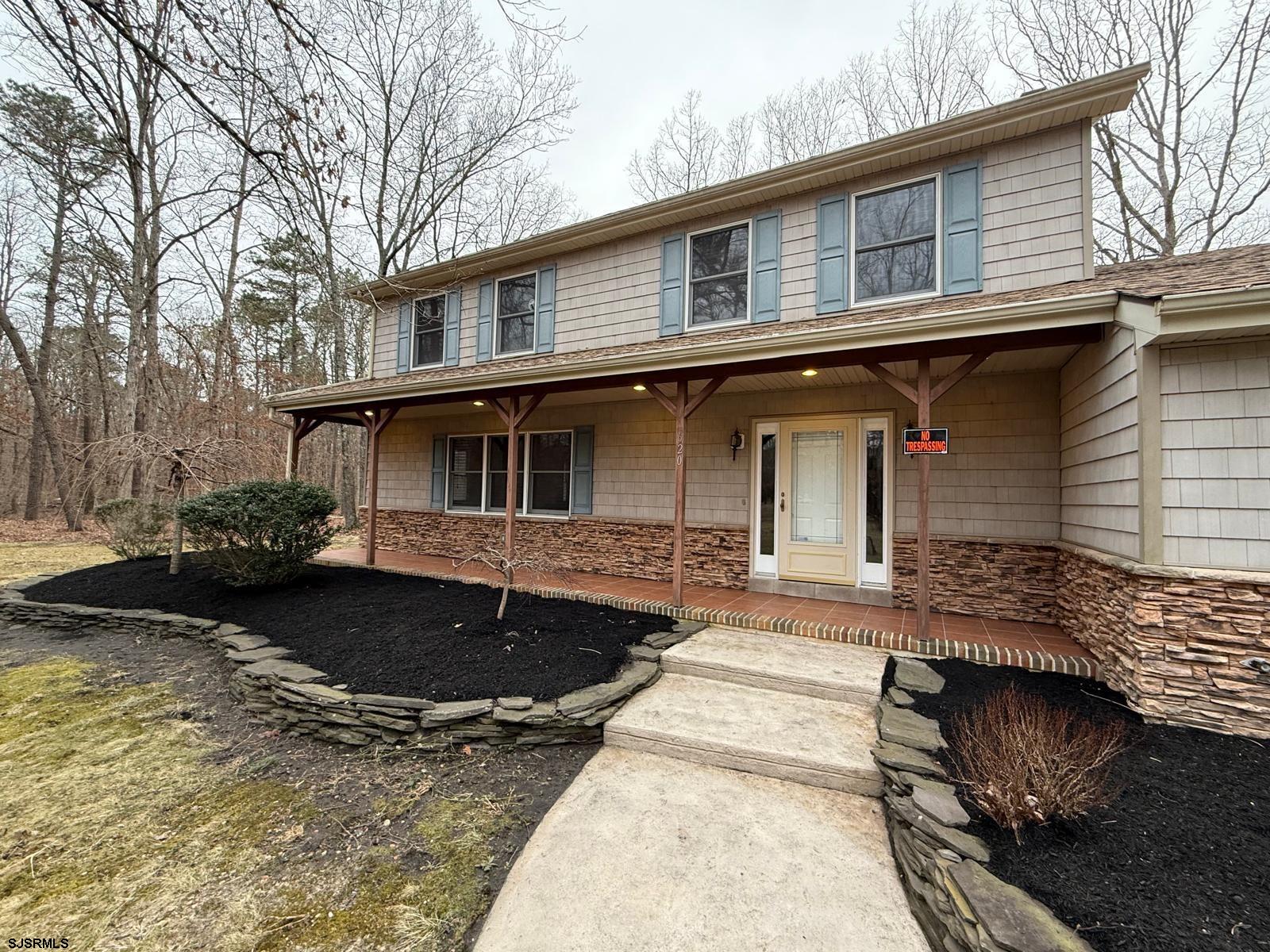 Welcome to 620 Columbia Road, Mullica Township! Nestled on a peaceful 4.22-acre property, this custom-built home showcases exceptional craftsmanship and timeless design. With cedar-style siding, stone accents, and outstanding curb appeal, the residence offers more than 2,500 square feet of thoughtfully designed living space. The main level features a spacious eat-in kitchen complete with granite countertops, solid red oak cabinetry, and brand-new stainless steel appliances. A dramatic two-story family room with a floor-to-ceiling brick fireplace creates a stunning focal point, while formal living and dining rooms provide the perfect setting for entertaining. A convenient powder room completes the first floor. Upstairs, you ll find three generously sized bedrooms, two full bathrooms, and a versatile loft overlooking the family room ideal for a home office, reading nook, or additional living space. Additional highlights include beautiful solid wood details throughout, a clean and dry crawl space with a poured concrete floor, a brand-new roof, dual-zone HVAC, an attached two-car garage, a detached one-car garage, and two additional outdoor buildings offering extra storage or workspace. A truly must-see home offering privacy, space, and comfort in a serene setting.