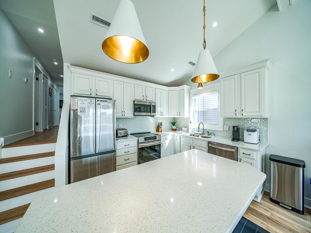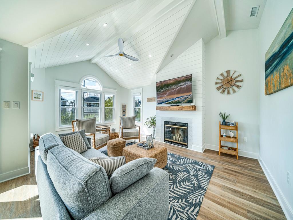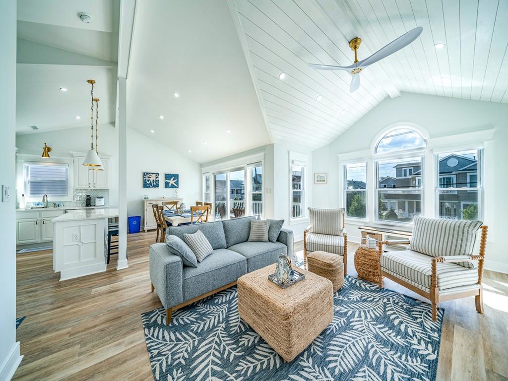 2527 CENTRAL AVE – TOP FLOOR WITH OCEAN VIEWS FROM MULTIPLE VANTAGE POINTS. NEWLY REMODELED! Beautifully decorated & designed 2nd floor condo, within the heart of the Gold Coast. New features throughout the entire home to make you feel like you are at a home away from home. Enjoy your morning coffee or evening cocktails on the huge rear deck, with an ocean view or follow the ocean breeze to the cozy front porch for happy hour and evening sun. Relax & Enjoy the best of both worlds on either the front or rear newly fully furnished decks. Only 2 blocks from the boardwalk and conveniently located between Kessel’s Korner and the sweetest block on Asbury (Nauti Donuts, Uncle Bills & Aunt Annie’s). 3RD House to the beach and less than 1 block walk to the 25th or 26th street beach. Home features new hard wood white oak floors, entire home freshly painted with 4 large Bedrooms - all with smart TV’s, remote ceiling fans w/newer comfy mattresses and 2 full Baths. NEW Trim & Crown Molding on every window and door in the house. Two NEW sliding glass doors and windows. NEW recessed lights throughout the entire home. New Cedar Impression Siding on both decks. NEW Glass White Picket backsplash & kitchen counter. New outside shower and more. The master bedroom has an ocean view with a spacious private bathroom, full glass enclosed shower and double sink vanity. Spacious fully renovated Living Room with High Vaulted Ship Lap Ceilings with architectural beams and trim, a wall of windows and crown molding and a 65-inch smart TV on the shiplap fire place. Remodeled Kitchen w/ 84-inch gorgeous quartz topped island, white glass picket Backsplash, new stainless-steel appliances, built in microwave and new Coffee maker & Keurig. Master Bedroom #1 has a luxurious king bed & private bath with a 6-foot double vanity and ocean views right from your bed or exit the new built in blinds 6 foot patio glass door that opens to a huge deck with ocean views. Bedroom 2 & 3 have ship lap walls with beautiful natural shades. Bedroom #2 has a bunk bed with one double bed, one twin bed and trundle pull out to sleep up to 4. Bedroom #3 has a double bed and a trundle pull out to sleep up to 3. Bedroom #4 has a queen bed with an ocean view and entrance to huge fully furnished deck. Attached large Garage to securely store all beach attire and bikes w/ 2 Additional parking spots. No smoking or pets, please. PLEASE NOTE: Pillows and bedspreads are provided. TOWELS, SHEETS AND ADDITIONAL BLANKETS ARE NOT INCLUDED and can be rented from SHEETS TO THE WIND at https://w.sheetstothewind.net/3716-central-av3717.html